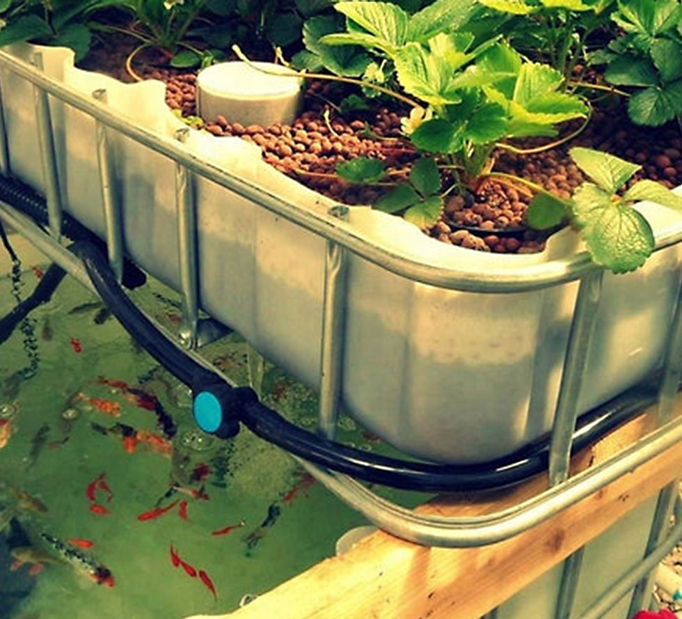 1) Aquaponics is a way to grow your own fish and vegetables at the same time. You feed the fish and the fish will feed your plants through their waste output.
